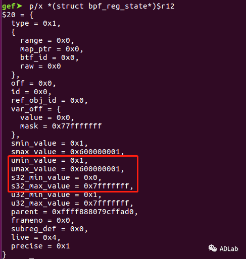 Ö´ÐÐÍêBPF_JMP_REG(BPF_JLT,BPF_REG_6,BPF_REG_5,1)Ö¸Áîºó£¬£¬£¬£¬£¬£¬½«R6¼Ä´æÆ÷¹æÄ£ÉèÖÃΪ0x1µ½0x600000001Ö®¼ä¡£¡£¡£¡£R6¼Ä´æÆ÷״̬ÈçÏÂËùʾ£º