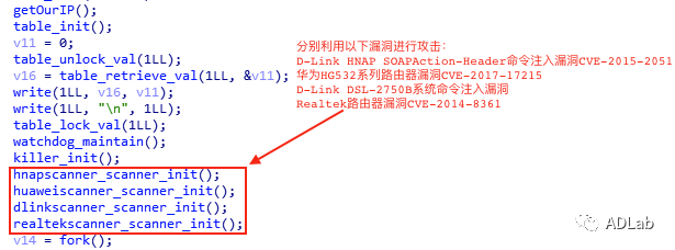 ΪÁËÕÆÎÕ¸ü¶àµÄÐÅÏ¢£¬£¬£¬ÎÒÃǼӴóÁ˶ԸÃ×é֯ʹÓõÄÎïÁªÍø½©Ê¬µÄÍøÂ磬£¬£¬¹ØÁª³ö1384¸ö¸Ã×é֯ʹÓõĹ¥»÷Ñù±¾£¬£¬£¬²¢Í¨¹ýADLabÎïÁªÍø×Ô¶¯»¯ÆÊÎöƽ̨¶ÔÕâЩÑù±¾¾ÙÐÐ×Ô¶¯»¯ÆÊÎö£¬£¬£¬½øÒ»²½¹ØÁª³öÁË100¶à¸öC&CЧÀÍÆ÷¡£¡£¡£ ¡£¡£ÆÊÎöЧ¹ûÅú×¢£¬£¬£¬¸Ã×éÖ¯ÒÔÍù¼¸Äê¾­³£Ê¹ÓûªÎªHG532ϵÁзÓÉÆ÷Îó²îCVE-2017-17215¡¢°®¶ûÀ¼¹«Ë¾¡°Eir¡±µÄD1000µ÷ÖÆ½âµ÷Æ÷TR064ЧÀÍÎó²îCVE-2016-10372¡¢Realtek·ÓÉÆ÷Îó²îCVE-2014-8361¡¢D-Link Devices HNAP SOAPAction-HeaderÏÂÁî×¢ÈëÎó²îCVE-2015-2051¡¢D-Link DSL-2750B ϵͳÏÂÁî×¢ÈëÎó²îµÈÖ÷Á÷µÄÎïÁªÍø×°±¸Îó²î¹¥»÷²¢¿ØÖÆ×°±¸¡£¡£¡£ ¡£¡£Í¼5ÊÇij¸öÑù±¾µÄ¹¥»÷´úÂëÆ¬¶Ï¡£¡£¡£ ¡£¡£